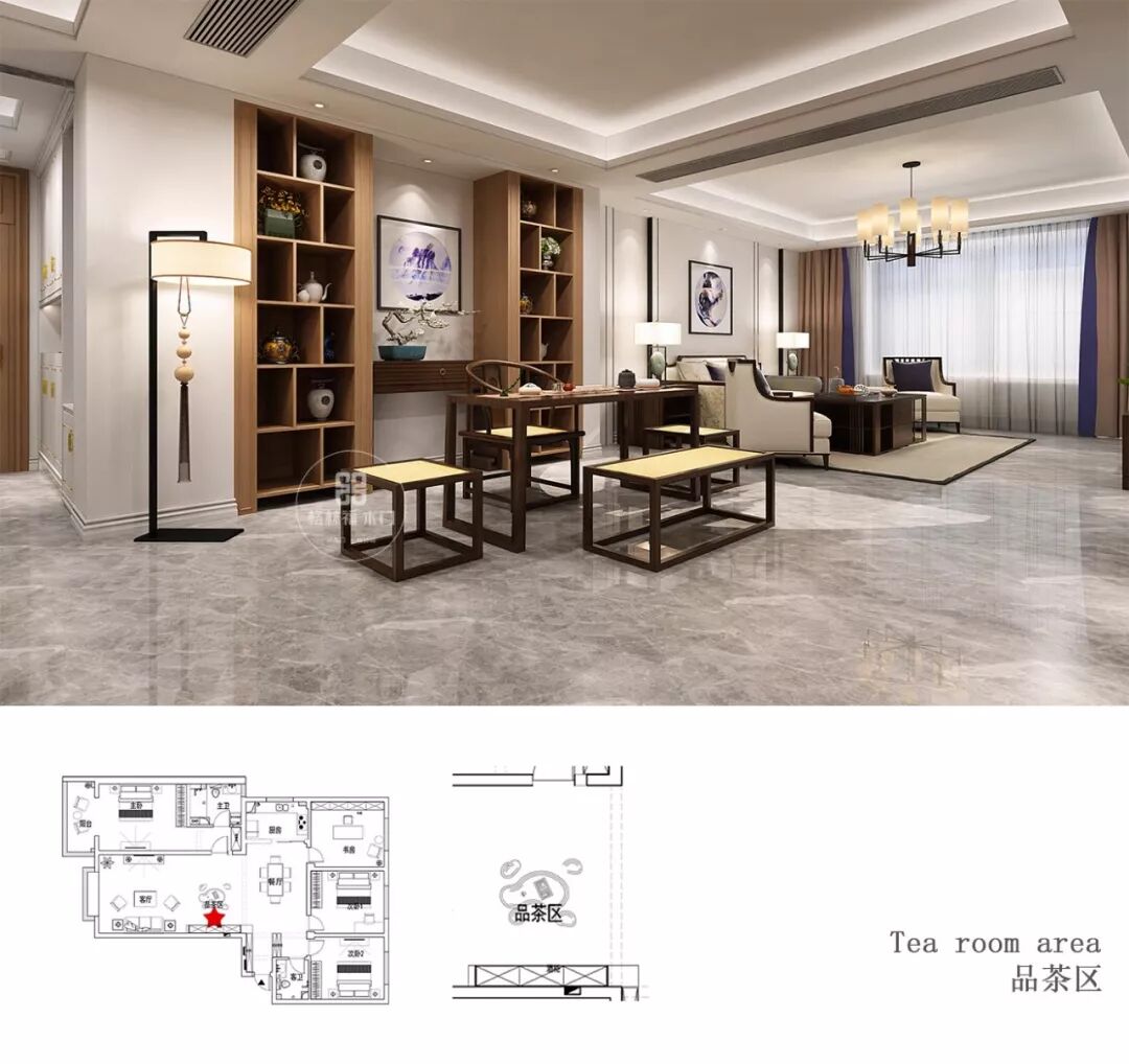 对于中式风格的设计, 一方面似乎达成了拒绝中国符号 “堆砌”的共识,另一方面不得不借助符号强调主题及其深刻,伴随着争议与取舍。但实质是新中式的空间,意境才是设计不变的追求。