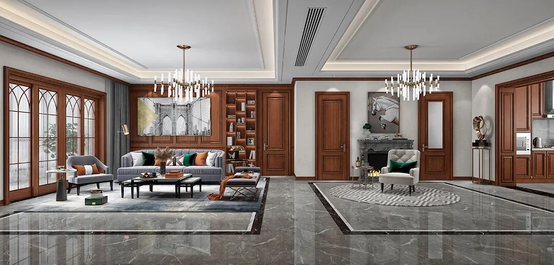 古典美式的空间,沉稳大气,低调又轻奢空间宽大,舒适,环境布局散发着浪漫高雅的古典气息。